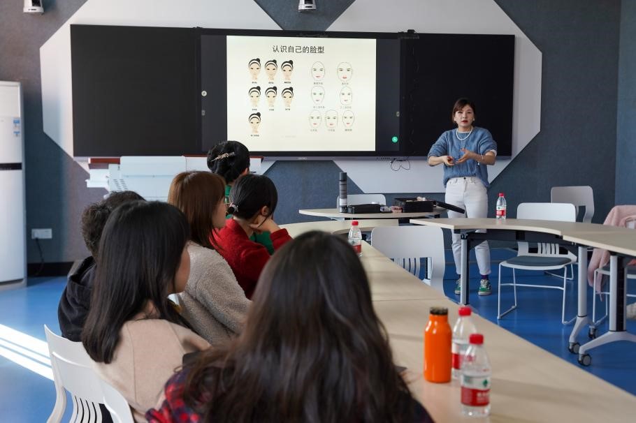 (通讯员 黄杨帆)3月8日下午,资深造型师刘彬阳做客新传院,举办了以女性化妆、穿搭为主题的讲座。本次讲座为公司三八妇女节活动之一,院工会主席、行政副经理周伊慧主持讲座。公司部分女教师参与了此次活动。