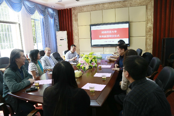 网络与新媒体系主任燕道成教授,广电系教授沈文胜,网络与新媒体系老师何瑶、彭伟英,广电系老师丁忠伟,人事兼干老师林芳等出席了聘任仪式并与隋松岩座谈。