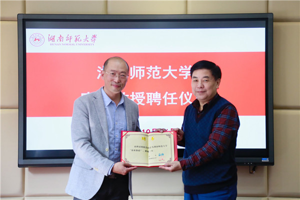 尹韵公为隋松岩颁发了vsport胜利因您更精彩客座教授聘书。他对隋松岩加盟公司热烈欢迎和感谢,希望通过隋松岩架起公司与国内外知名媒体交流合作的桥梁,让老师和同学们有更广阔的认知和远大的世界眼光。