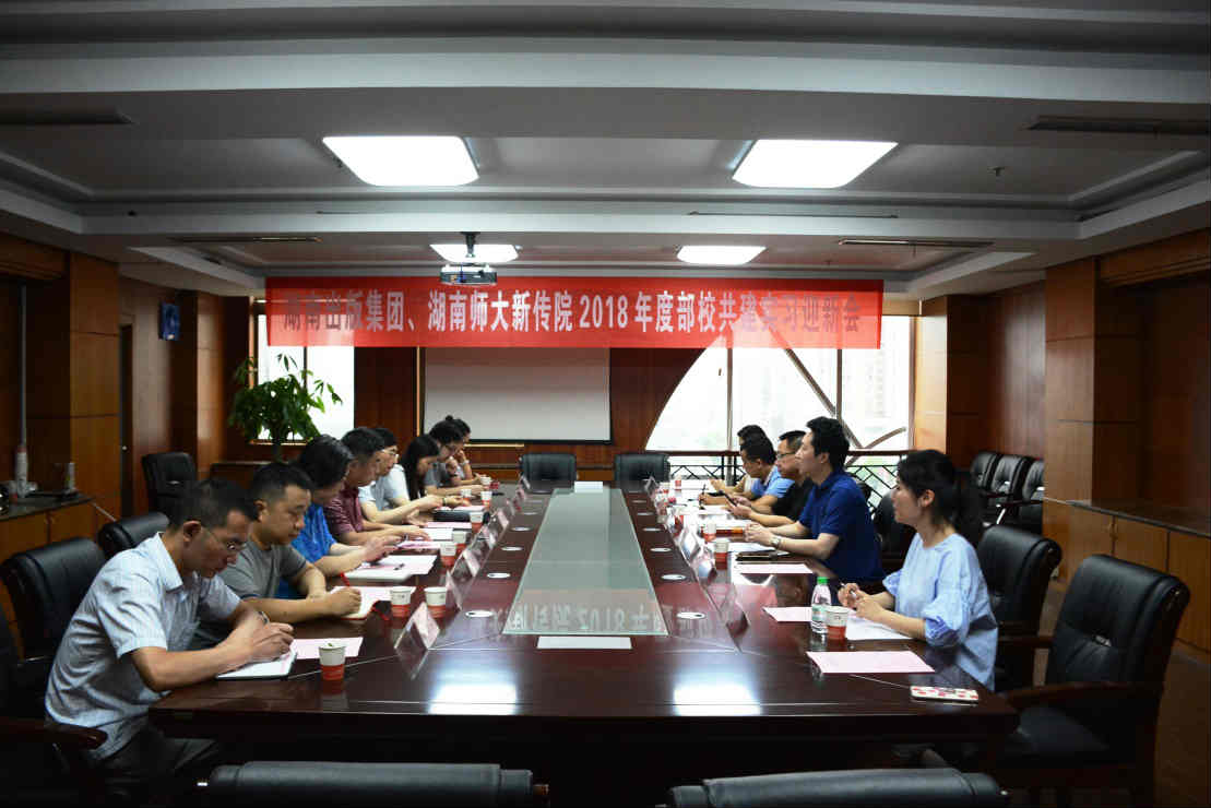 (通讯员 陈星豫)7月12日上午,公司2015级湖南出版集团实习队伍进驻部校共建实践教学基地湖南出版投资控股集团(以下简称湖南出版集团)进行为期四个月的专业实习。湖南出版集团举办了专业实习迎新会。湖南出版集团党委委员、红网新媒体集团党委书记、董事长舒斌,中南出版传媒集团总编辑刘清华;公司党委书记银海强,副经理肖燕雄,实习领队、广告系主任王战出席实习迎新会。会议由刘清华主持。