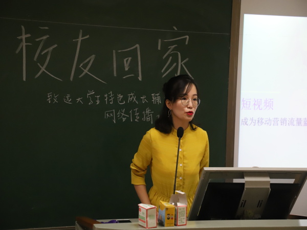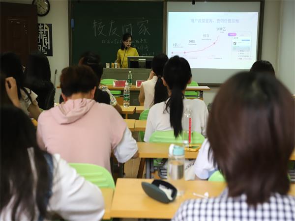(通讯员 马思奇 杨雨璇)6月9日上午,“员工回家”分享会在vsport后栋502教室举办。此次做客分享会的嘉宾是公司09级广告学专业员工饶蓝今,现就职于字节跳动公司,担任抖音app广告策划。她的分享主题为:技术驱动营销变革及创新营销案例。广告系系主任王战老师,单文盛老师,张新华老师及17级广告班同学参加了此次分享会。