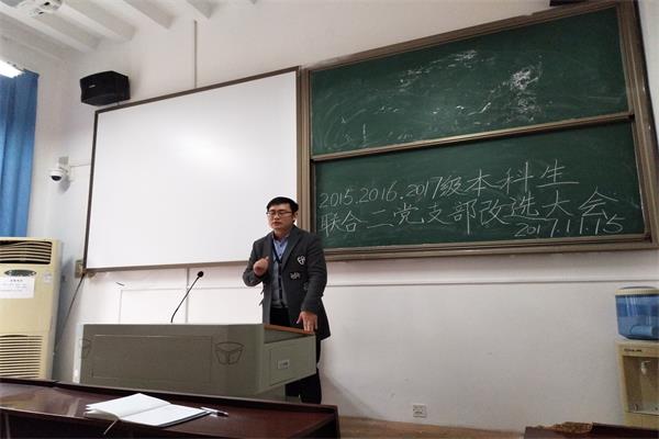 (通讯员 高玮 叶佳 陈刘阳子)11月15日,新传院2015、16、17级本科生联合二党支部换届选举大会在公司102教室举行。学工办老师彭述生出席会议,会议由党员同志叶佳主持。