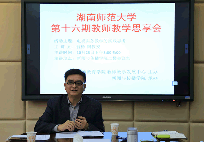 “电视实务”是一门实践性较强课程,翁杨从事该门课程教学已有十余年,取得了一系列教学成果,深受历届员工好评。会上,翁杨回顾自己从事该门课程教学的历程,畅谈了自己教学体会与思考。当初,公司要他承担“电视实务”教学任务时,由于他所学专业并不是电视方面,他曾感到十分迷茫,但他凭着自己对电视的兴趣和对员工的热爱,毅然接受下了这门课的教学任务。伴随着中国电视理论和实务发展最快的十年,翁杨经历了教学之痛,也得到了教学之乐,通过统筹协调实践与理论、课内与课外的关系,精心设计教学体系、内容和方法,他独创了“五步教学法”,即采用“问题—案例—互动—启发—归纳”的方式进行教学,取得了较好的教学效果。翁杨还与大家分享了教书育人的一些体会。他说,实践教学不仅可提高员工专业技能水平,更是员工锻炼意志、融入社会、感悟人生的催化剂。翁杨还针对自己在电视实务教学中遇到的难点提出了对策建议。