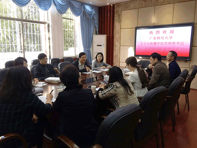 (通讯员:彭丽)10月31日上午,广东财经大学人文与传播公司党委书记苏明华一行来公司考察并开展“人文素质教育”专题调研。调研会在公司二楼会议室举行,副经理肖燕雄、闵素芬出席会议。