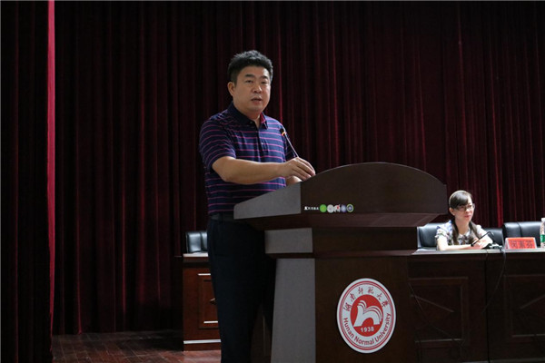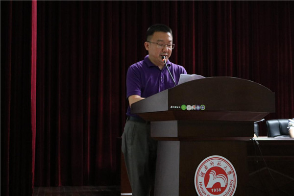 编辑出版系教师陈宏平代表教师进行了发言,他分别以一位老师、一位学长、一位家长的身份对新生们谆谆教诲,教导同学们珍惜时间、锤炼专注的品质、学会感恩包容以及注意自身安全。