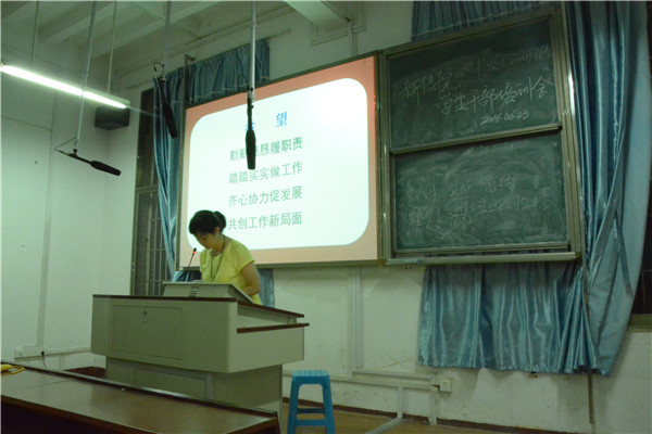 陈淼向到场的领导、老师表示欢迎,向成功担任员工干部的同学表示祝贺。