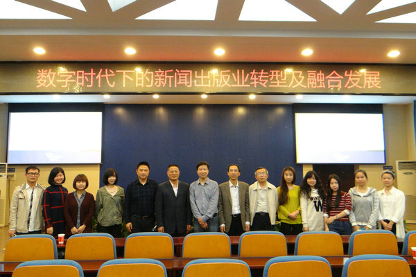 向江分别从时代背景、技术驱动力、转型及融合发展、发展路径四个方面,介绍了数字时代下新闻出版业所面临的困境及未来的发展方向。他提出,“屏媒一定会取代纸媒,只是时间问题”,同时还提醒同学们要用开放的眼光看待世界。在分析新闻出版业的现状时,他认为与终端用户需求隔绝是其发展最大的阻碍。他还谈到,新闻出版业应依靠向数字出版转型及媒体融合来继续谋求良性发展。