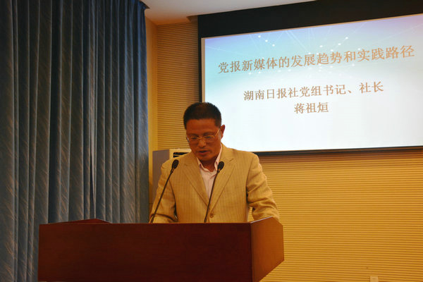 (记者 欧阳小武 孙越)4月14日晚,湖南日报社党组书记、社长蒋祖烜做客vsport书山论坛,带来了题为“党报新媒体的发展趋势和实践途径”的讲座。讲座由新传公司党委书记龚向明主持。