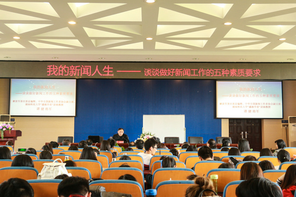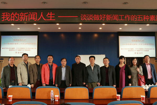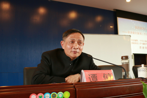 谭健将军结合自己丰富的从业经验,就如何做好新闻工作,提出了新闻工作者所需的5种素质:1.确立自己的政治视野,“高岸深谷而不小肚鸡肠”,以小见大,勺水兴波,做大气的新闻;2.建立自己的学术背景,多学习其他领域的知识,做沉甸甸的新闻;3.培养自己对语言文字的敬畏感和痴迷度,语言文字决定写新闻的层次,要努力提高运用语言文字的能力;4.高度重视技术性因素在新闻工作中的影响,正确认识新媒体的作用;5.“跳出新闻做新闻”,看一些非新闻专业的书籍,写一些非新闻类的文章,做一些非新闻采写的事。讲座中,谭健将军以“采访航母舰载机”等亲身见闻为例,分享经验,抒发见解。