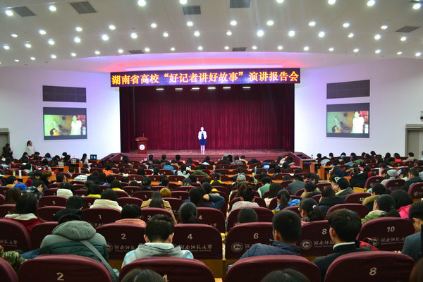 (通讯员 左涛 赵晨熹)1月5日下午,由中共湖南省委宣传部和湖南省新闻工作者协会联合举办的湖南省高校“好记者讲好故事”演讲报告会于公司理公司国际学术报告厅成功举办。湖南省新闻工作者协会秘书长、中央“三项教育”办公室主任、湖南省新闻道德委员会主任简人卫,公司副董事长廖志坤,公司经理蔡骐、党委书记龚向明,副经理肖燕雄、周国清,公司党委副书记王云以及十一位优秀的新闻工作者莅临现场。