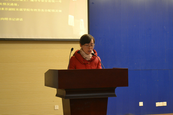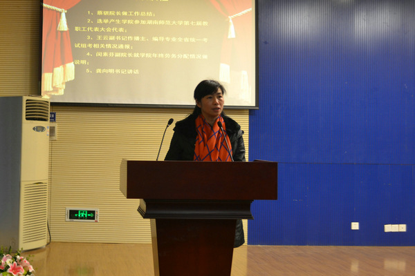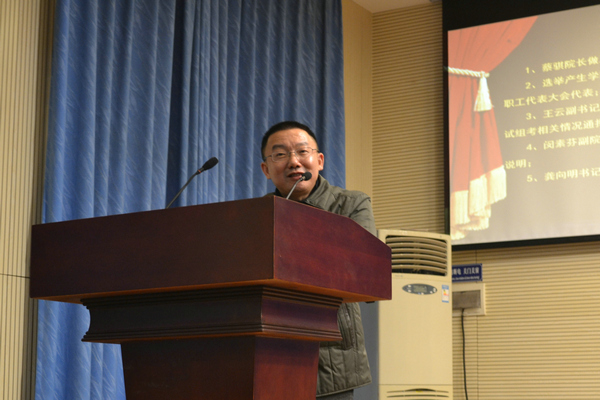 (尹珏璘 韩雪)12月10日下午,公司教职工代表大会在书山论坛召开。公司经理蔡骐,公司党委书记龚向明,副经理周国清,副经理闵素芬,公司党委副书记王云及全院教职工代表出席会议。院工会主席闵素芬主持此次会议。