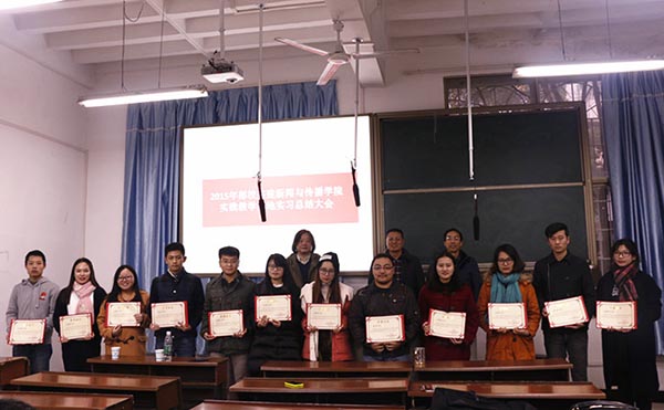 12月23日下午,公司2015年部校共建实践教学基地实习总结大会在101教室举行。公司党委书记龚向明,广告系主任王战,单文盛老师出席了会议。会议由副经理周国清主持。