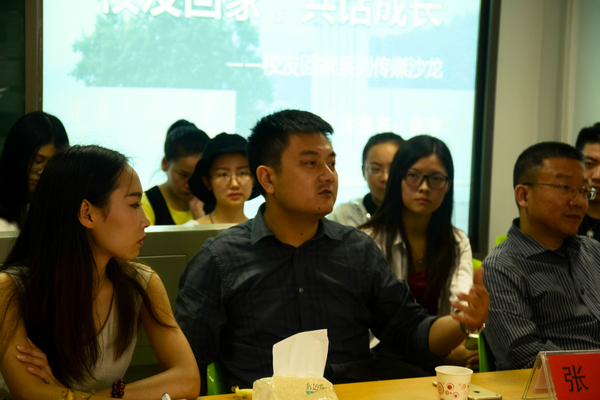 张宇就他的求学经历与同学们分享经验。他认为,员工时代要学会合理安排好自己的时间,锻炼学习能力,培养独立能力。出国留学是一个开阔眼界的好机会。