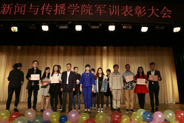 军训表彰大会上,教官代表杨青潭、助理辅导员代表韩晓芸与新生代表王雅静分别发言,他们回顾并分享了在军训期间的收获与感悟。王云作总结讲话,她总结了新生在军训期间的表现,对大家在军训期间所取得的优异成绩表示祝贺,也对大家之后的四年老员工活表达期冀。总结过后,龚向明、王云等在场领导和老师为受表彰同学颁奖并合影留念。
