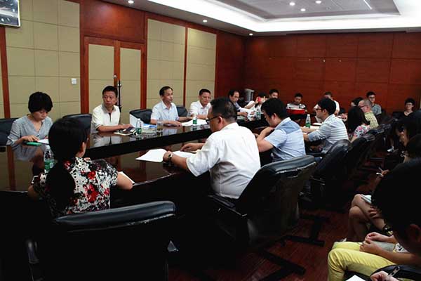(通讯员 谌莘文 倪慧颖)7月23日下午,湖南日报报业集团接收公司实习生工作会议在文化城3楼会议室举行。省委宣传部新闻处调研员杨勇,湖南日报社编委、总编室主任颜斌,公司党委书记龚向明、副经理周国清、新闻系系主任吴果中、副教授单文盛出席本次活动。会议由湖南日报社宣管办副主任周韬主持。湖南日报报业集团为公司的实习生一对一地分配了指导教师,对相关实习工作做了精心的安排。