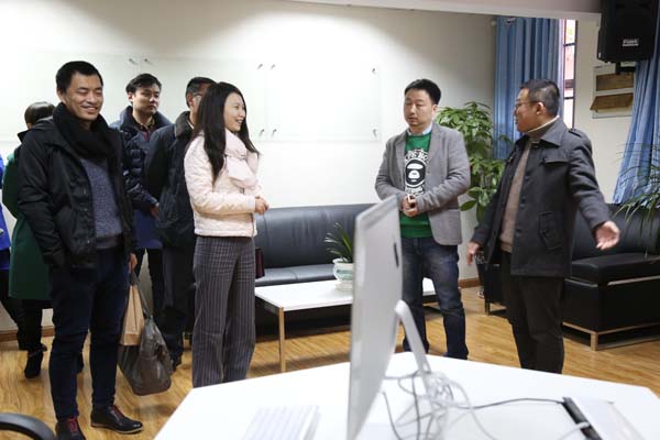 签约仪式后,蔡骐经理带领《晨报周刊》一行参观了公司的网络传播工作坊、媒介创意工作坊、网络舆情中心以及新媒体苹果实验室。