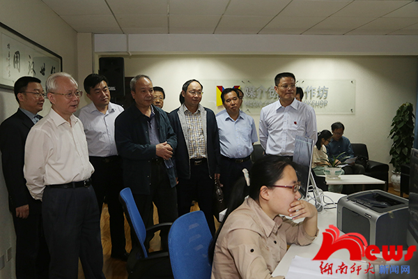 签约仪式前,李发美一行实地考察vsport,参观了舆情分析室、CATI室、网络传播工作坊、媒介创意工作坊、新媒体苹果机房、湖南省社会舆情检测、网络舆情研究中心以及数据中心。