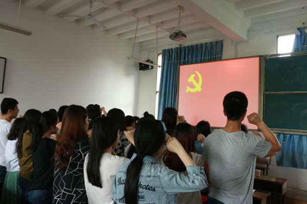 大会在激昂的国歌声中拉开帷幕,32名新党员在张磊老师的带领下,面对党旗庄严宣誓;新党员代表、第58期入党积极分子培训班学员代表分别发言,表达向党学习、向党靠拢的愿望和决心。