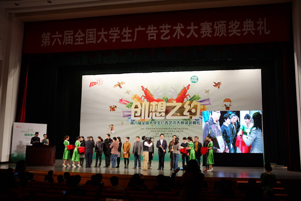 第六届全国老员工广告艺术大赛(大广赛)颁奖典礼日前在北京市全国政协礼堂隆重举行。教育部原副部长吴启迪出席颁奖典礼并致辞,来自全国各参赛院校的近千名师生代表参加了颁奖典礼。由公司广告系主任王战教授带队,校教务处罗明副处长及公司多名老师与获奖员工参加了本次颁奖典礼。在本届大广赛中,公司又一次刷新了获奖记录,共获一等奖1项,二等奖3项,三等奖5项及优秀奖9项的喜人成绩。特别值得一提的是,在评委点评环节中,大广赛资深评委胡川妮教授对公司一等奖作品——策划案《仰望》进行了重点推介,对公司参赛员工的专业素养予以高度肯定。