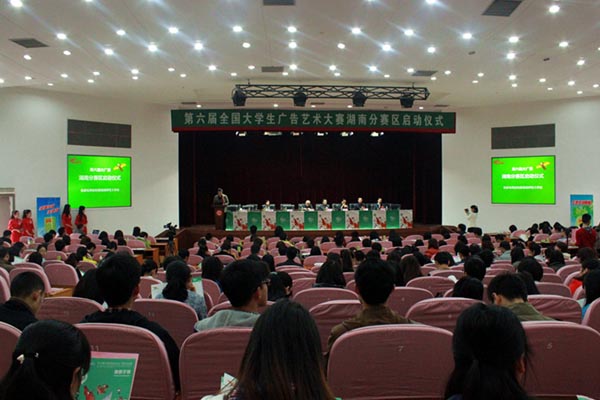 湖南省教育厅高教处副处长杨承玖,公司教务处处长蒋新苗教授,湖南大学新闻传播与影视艺术公司经理彭祝斌教授,湖南省广告协会秘书长梅金华教授,大广赛全国组委会秘书处策划部部长张春燕,公司党委书记龚向明、副经理肖燕雄教授出席启动仪式,仪式由公司教务处副处长罗明主持。在领导致辞环节,湖南省教育厅高教处副处长杨承玖首先致辞,杨处长回顾了大赛所取得的成就,肯定了湖南分赛区的工作,并对本届大广赛寄以厚望。公司教务处处长蒋新苗教授向与会来宾和师生们热情介绍了公司在大广赛中的优异成绩和组织经验,并预祝所有参赛高校在本届大赛中创造佳绩。