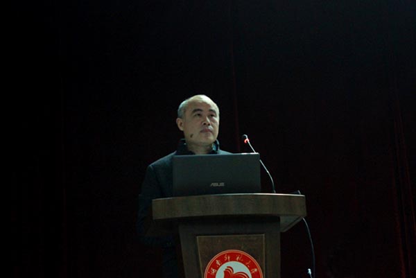 图为公司广告学系主任王战教授主持主题演讲