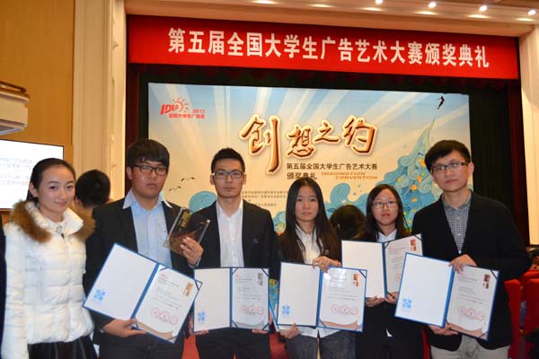 其中,张政、梁蓉、王承建、何春喜、徐彬瀚的作品《花茶女之寻》获影视类广告全国一等奖,杨刚、何春喜的作品《新“人有三急”》获广播类广告全国二等奖,潘玮琦、林润喆、沈丹娜、 岑思瑞、李勇的作品《缘知源味,晋善晋美》、梁敬萍、杨卓豪、林岚、王立红的作品《超级盒能》、黄璇、李玉娟、崔嘉璐、 周贤、陈思涵的作品《新贝儿克小儿咽扁颗粒“有贝无患”推广方案》获广告策划类全国三等奖,申一辰、黎婕、殷宇杰的作品《雷柏RATV——起风篇》获广播类广告三等奖。