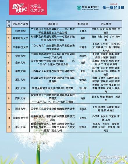 “中国老员工经济调研项目”是由中国农业银行与《第一财经日报》联合主办的公益活动,至今已成功举办了3届。今年的中国老员工经济调研有来自全国25所高校的27支调研团队参加,通过对各调研团队调研成果的层层评选,由评审专家团最终遴选出了12支团队,角逐今年的最优秀调研团队称号。