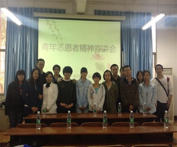 (通讯员 程佳雯 黄丹)10月17日中午12点半,我院青志协在公司举行青年志愿者精神宣讲会。校青协副会长余佩林以及各兄弟院校的青志协会长出席了本次宣讲会。