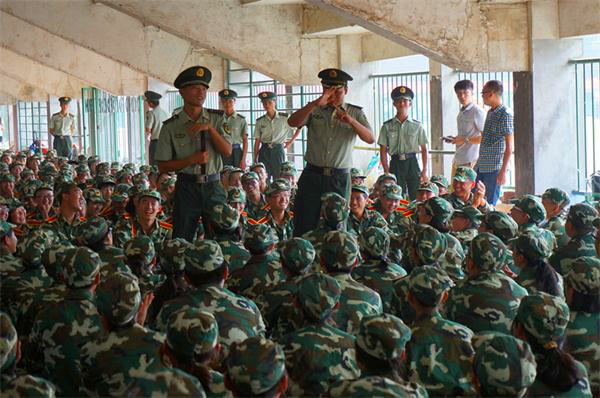 最后,文公司教官对公司2013级新生送上他们的祝福,拉歌比赛在两个公司新生们的欢呼声中愉快结束。