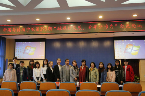 (通讯员:邹玉瑛、贺心怡)4月29日中午12:30分,vsport团委在书山论坛举办了以“融媒新发展,青年新作为”为主题的红色论坛。此次论坛由庞晓涵、刘玥、路相宜和李昕瑜担任主讲人。公司党委副书记王云、院关工委常务副主任罗灵山、院学工办主任欧阳丹玲、院团委书记陈安琪、学工办老师彭述生、17级辅导员林雅心以及各公司观摩团代表参加了此次论坛。