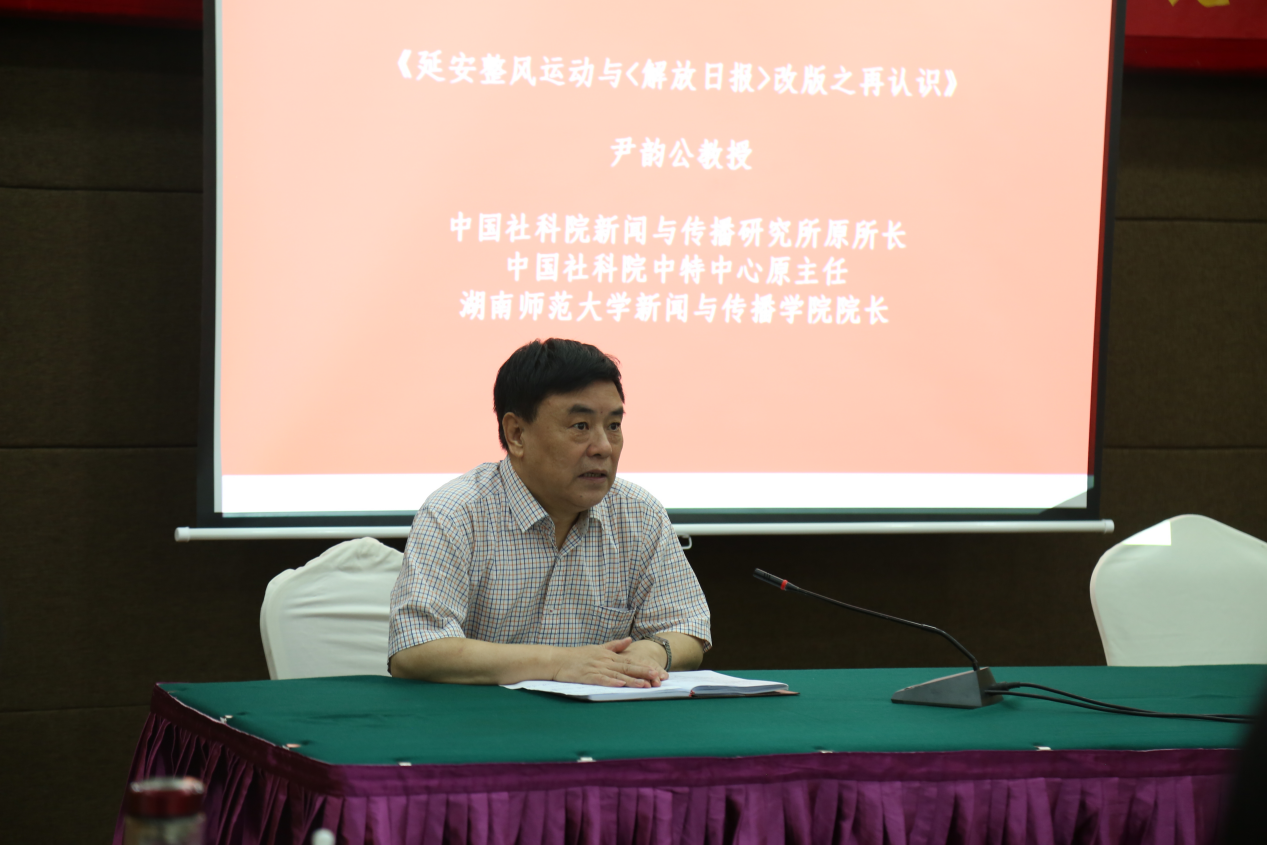 中国社科院新闻与传播研究所原所长、中国社科院中特中心原主任、vsport经理尹韵公教授发表主题报告《延安整风运动与<解放日报>改版之再认识》,对中国共产党新闻思想史进行梳理与反思。