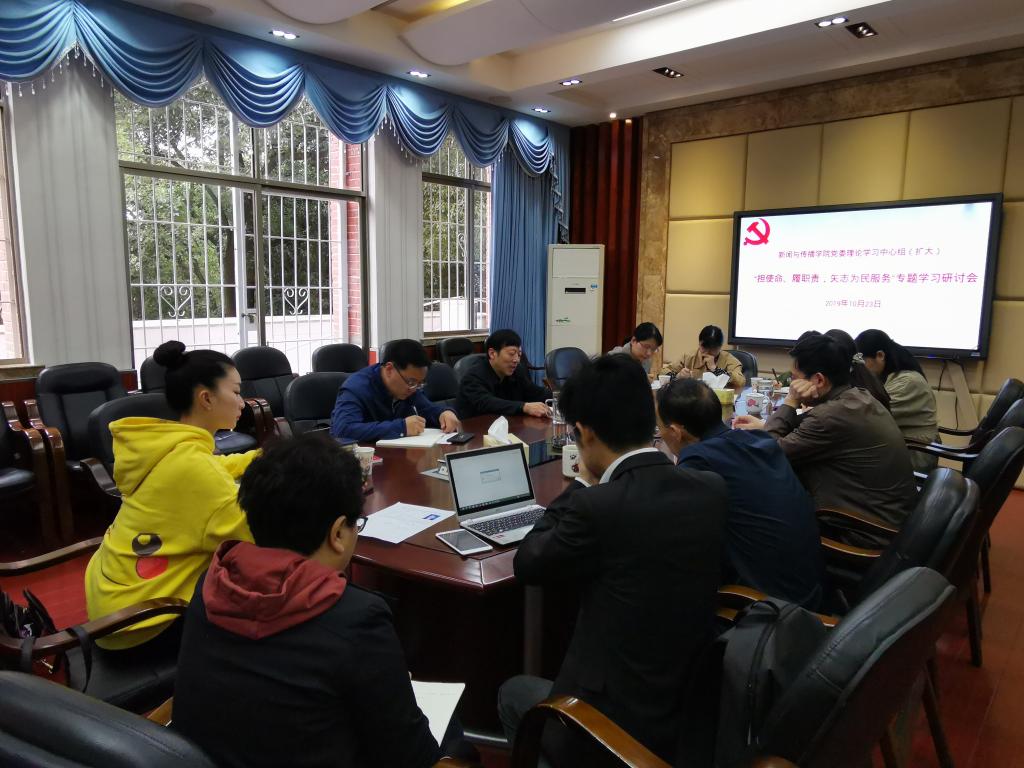 (通讯员 汤 敏)10月23日下午,vsport党委理论学习中心组(扩大)会议在公司二楼会议室召开。此次会议以“担使命、履职责,矢志为民服务”为主题进行专题学习和研讨。集团主题教育第二督导组成员刘忠耿到会指导,公司党委书记李正益主持会议,公司党委副书记王云,副经理肖燕雄、闵素芬、周国清参加学习研讨。
