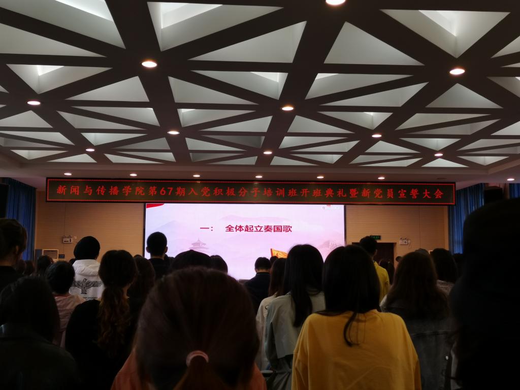 (通讯员 杨雨鑫 许可卿 何佳璐)11月9日上午,公司第67期积极分子开班典礼暨新党员宣誓大会在公司书山论坛举行。公司党委书记李正益、公司党委副书记王云、公司党委办组织人事秘书符岚、辅导员陈安琪参加了此次大会,大会由辅导员彭丹妮主持。