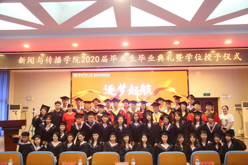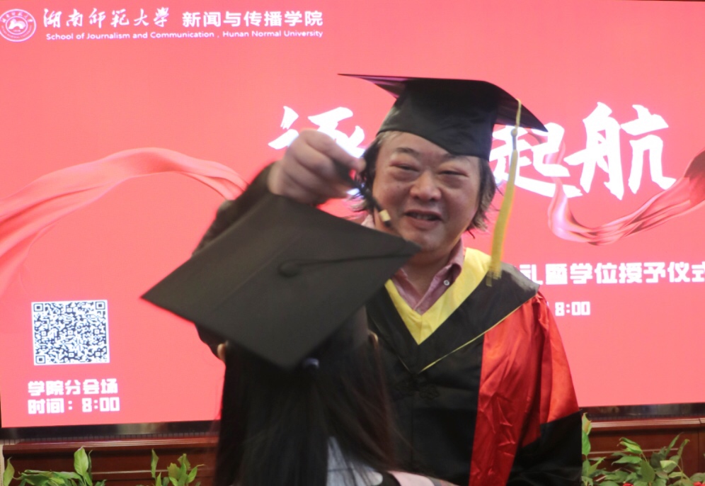 仪式尾声,在场的毕业生们百感交集。四年前,作为新生的他们走入陌生的校园,在鸟语蝉鸣以及爽朗的夏风中开启人生新征程;而后数度盛夏鸣蝉,木兰花开,桂花萦绕,橘洲焰火升空绽放,照亮湘江,他们在师长的教诲下成长为目标坚定、未来明确的传媒人;如今,他们将从书山扬帆起航,乘风破浪,直奔胜利彼岸。