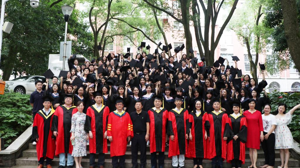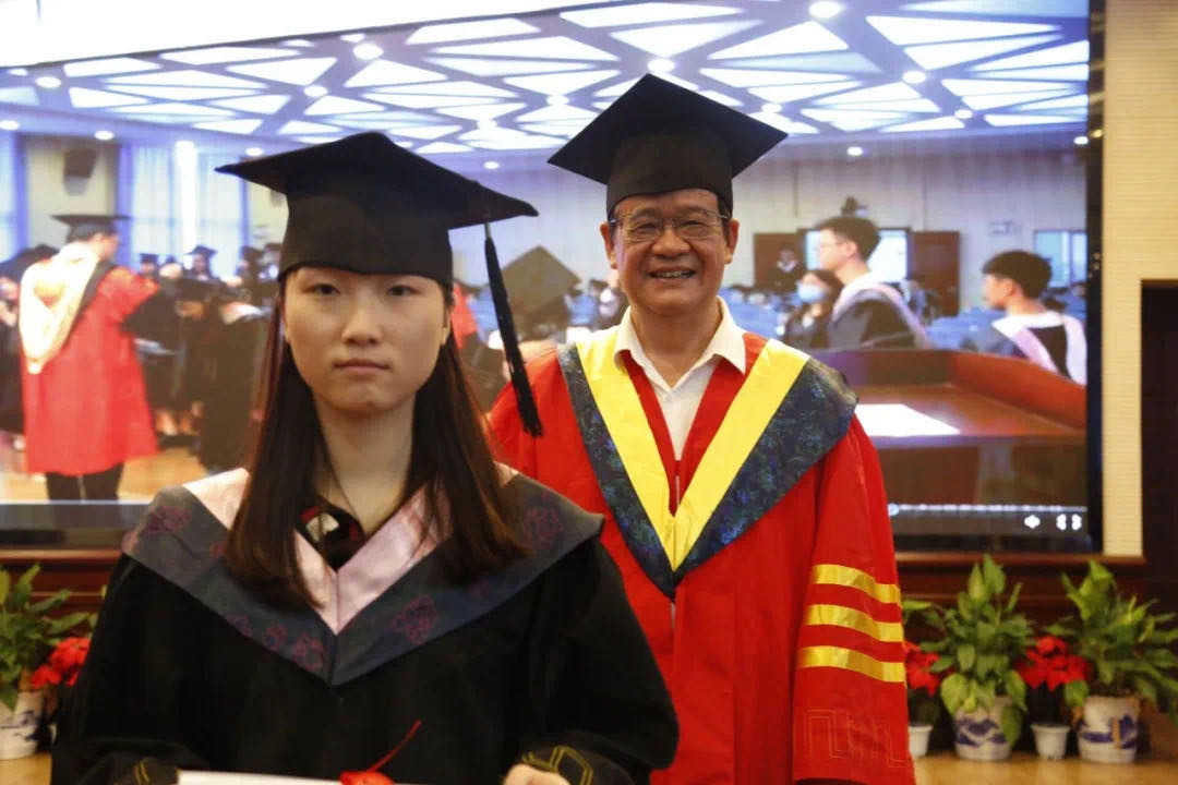 最后,各位导师为在场毕业生拨苏正冠,颁发毕业证、学位证、授予学位,并一一合影留念。