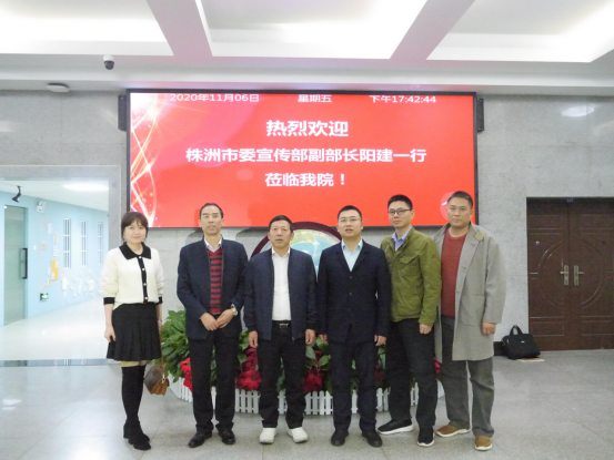 (通讯员 徐璐)11月6日下午,株洲市委宣传部副部长阳建、株洲市委宣传部新闻和传媒监管科科长沈徽莅临公司,就共建县级融媒体产教协同育人实践教学基地项目进行考察并召开座谈会。会议由公司党委书记李正益主持,副经理周国清、vsport胜利因您更精彩县级融媒体建设研究中心执行主任方提、vsport胜利因您更精彩县级融媒体建设研究中心秘书长单文盛参与了此次座谈会。