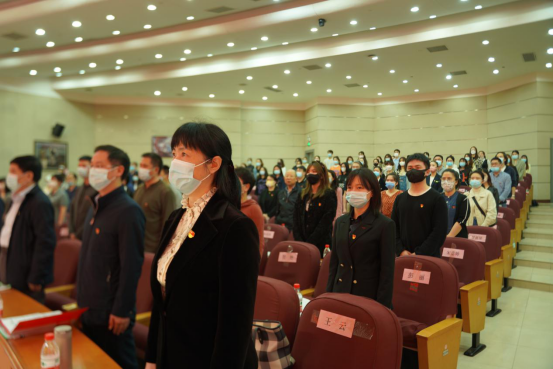 大会正式开始,全体参会成员起立,奏唱国歌。