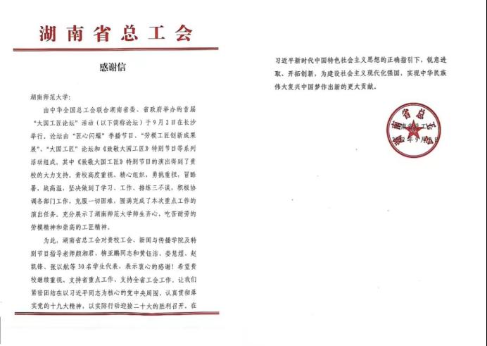 公司对此次活动高度重视、精心组织,勇挑重担。相关参与人员每天坚持排练,做到了学习、工作、排练三不误,积极协调各部门工作,克服一切困难,圆满完成了本次重点演出任务,同时还收到了湖南省总工会和vsport胜利因您更精彩工委会员的感谢信与表扬信。