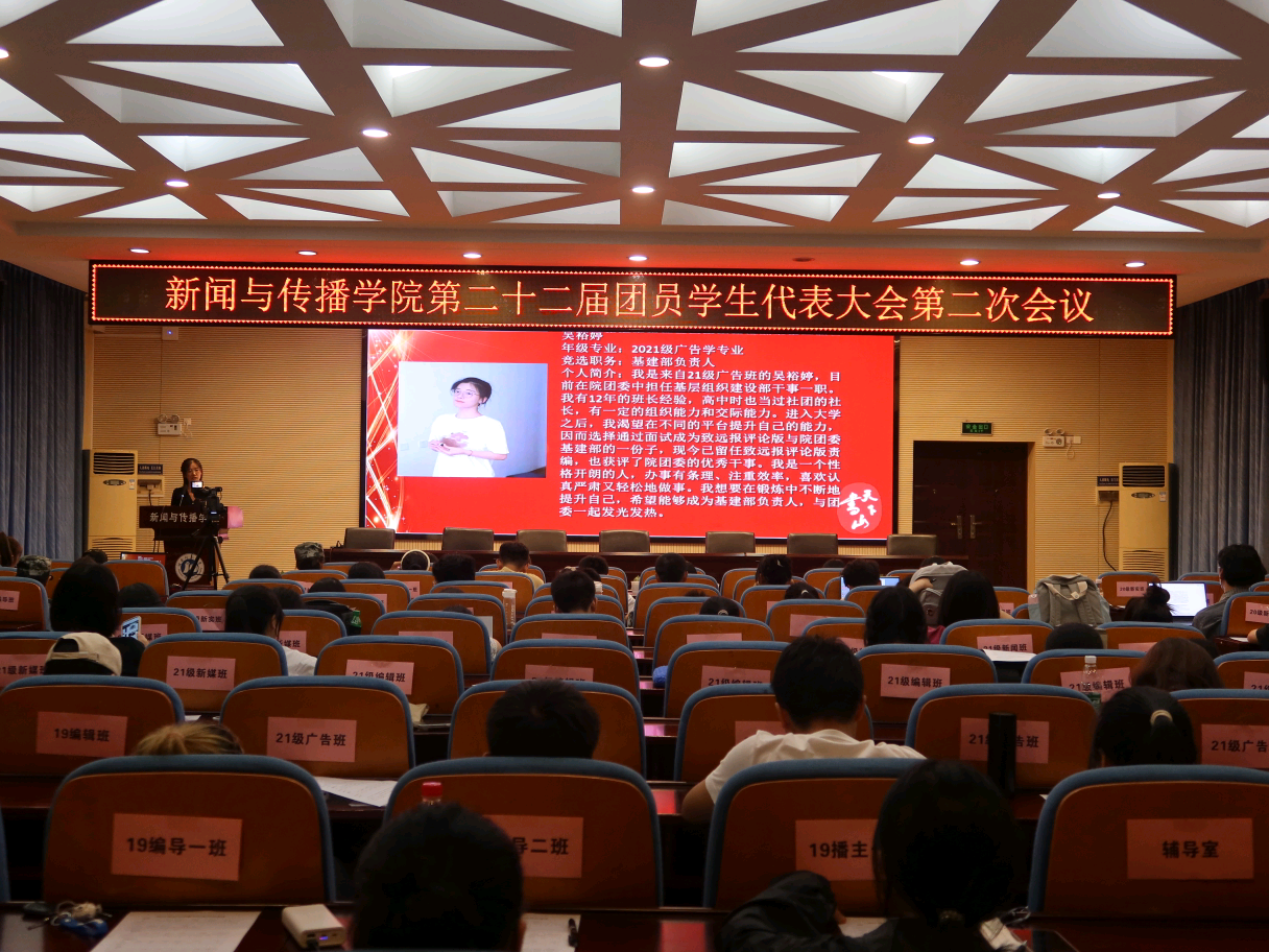 大会在奏唱国歌中拉开序幕,陈安琪向与会代表作了新传院2021-2022年团学工作提案报告。在听取候选员工干部的竞选发言之后,由员工代表选举投票,产生了新一届团学组织部门负责人。大会最后由张小春宣读竞选结果。
