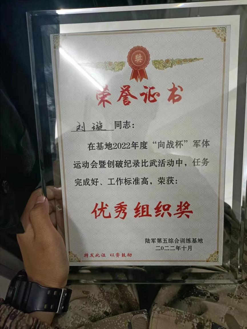 在过去的一个月中,她告别亲友,初着戎装,扛起旌旗钢枪,成为了一名英姿飒爽的女兵。在基地2022年度“向战杯”军体运动会暨创破纪录比武活动中,刘璇更是以出色的表现,荣获优秀组织奖。