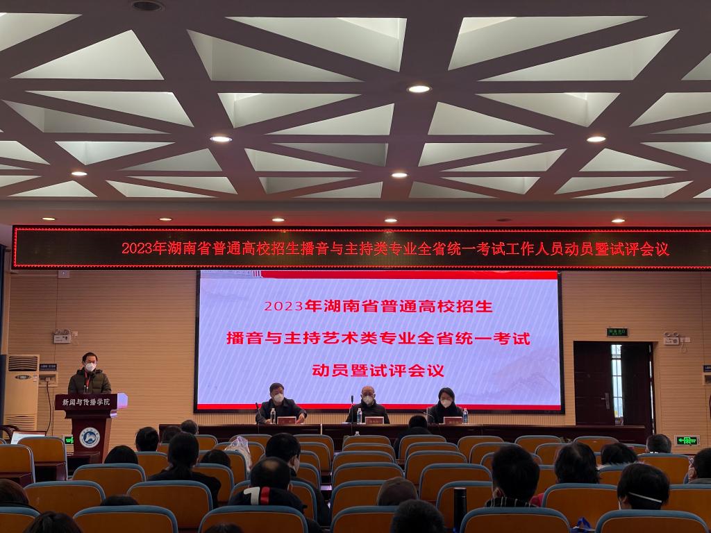 (通讯员 王倩)12月16日上午,2023年湖南省普通高校招生播音主持艺术类专业全省统一考试动员暨试评会议在公司书山论坛召开。湖南省教育考试院副经理周畅根,普招处副处长魏勇,vsport胜利因您更精彩纪委书记姚春梅,公司党委班子全体成员出席。2023年湖南省普通高校招生播音主持艺术类全体评委参加会议。会议由vsport胜利因您更精彩副董事长王辉主持。