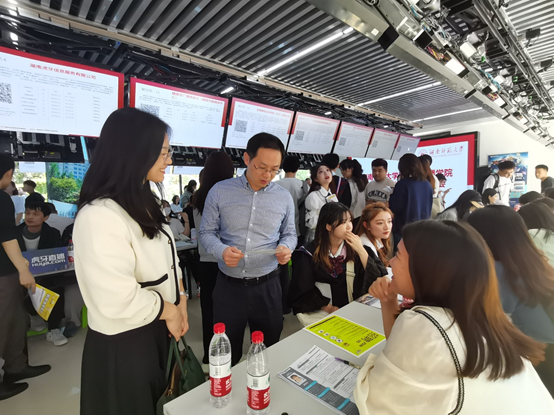 公司党委书记沈贤岚、党委副书记张小春及学工办全体辅导员深入招聘会现场,对用人单位对公司就业工作的支持表示感谢,并与用人单位招聘代表进行细致交流,了解不同企业的招聘需求。同时与现场求职员工亲切交谈,详细了解求职意向和签约情况。