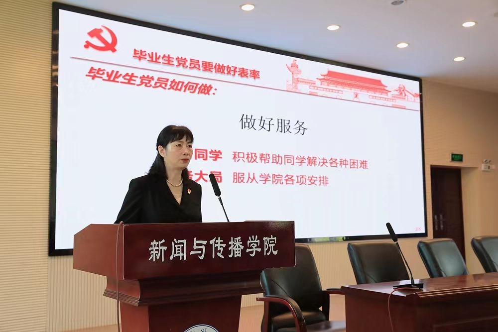 王云以“强化党性尽本分,率先垂范作表率”为题为毕业生党员授课。她提出毕业生党员要充分做好“尽本分”和“作表率”两个方面。在“尽本分”上,王书记首先为大家细致讲解了党员档案材料的重要性以及党组织关系转接的方式、流程和相关注意事项。在“作表率”上,王书记强调同学们在毕业之际更要谨记自己的党员身份,严守纪律、积极参加主题教育活动和其他组织生活,积极帮助身边同学、服从公司各项安排,在今后各岗位上也要充分发挥党员的先锋模范作用,彰显青年党员的责任与担当。