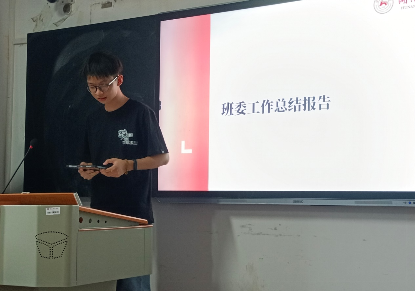 此次班会由四个部分组成:班委年度工作总结、交通安全教育、诚信安全教育、职业生涯规划。在各班班长主持下,班委依次上台对本学年工作进行总结报告,报告结束后由班长对班级成员进行交通安全教育。临近期末,欧阳丹玲叮嘱同学们认真复习、诚信应考,并希望同学们务必重视安全问题,尤其是电动车骑行安全。会议最后,欧阳丹玲表示,即将步入大三,同学们应尽早做好自身职业生涯规划,明确目标后着手培养相关能力,为未来提前做好准备。