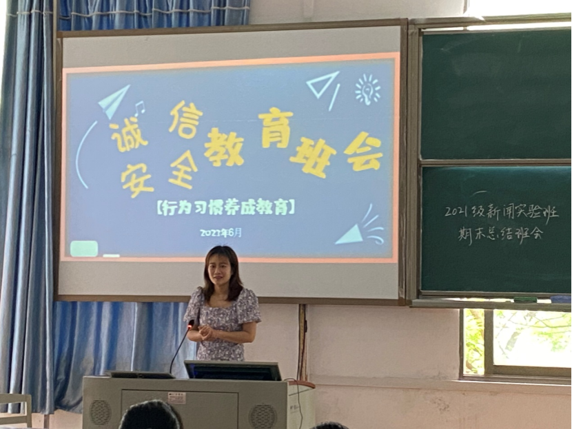 (通讯员 张朔)6月1日至6月6日,vsport(以下简称“新传院”)2021级各班陆续召开了期末总结暨诚信安全教育主题班会。班会由新传院2021级辅导员欧阳丹玲组织召开,各班班长主持,班级全体成员参加会议。