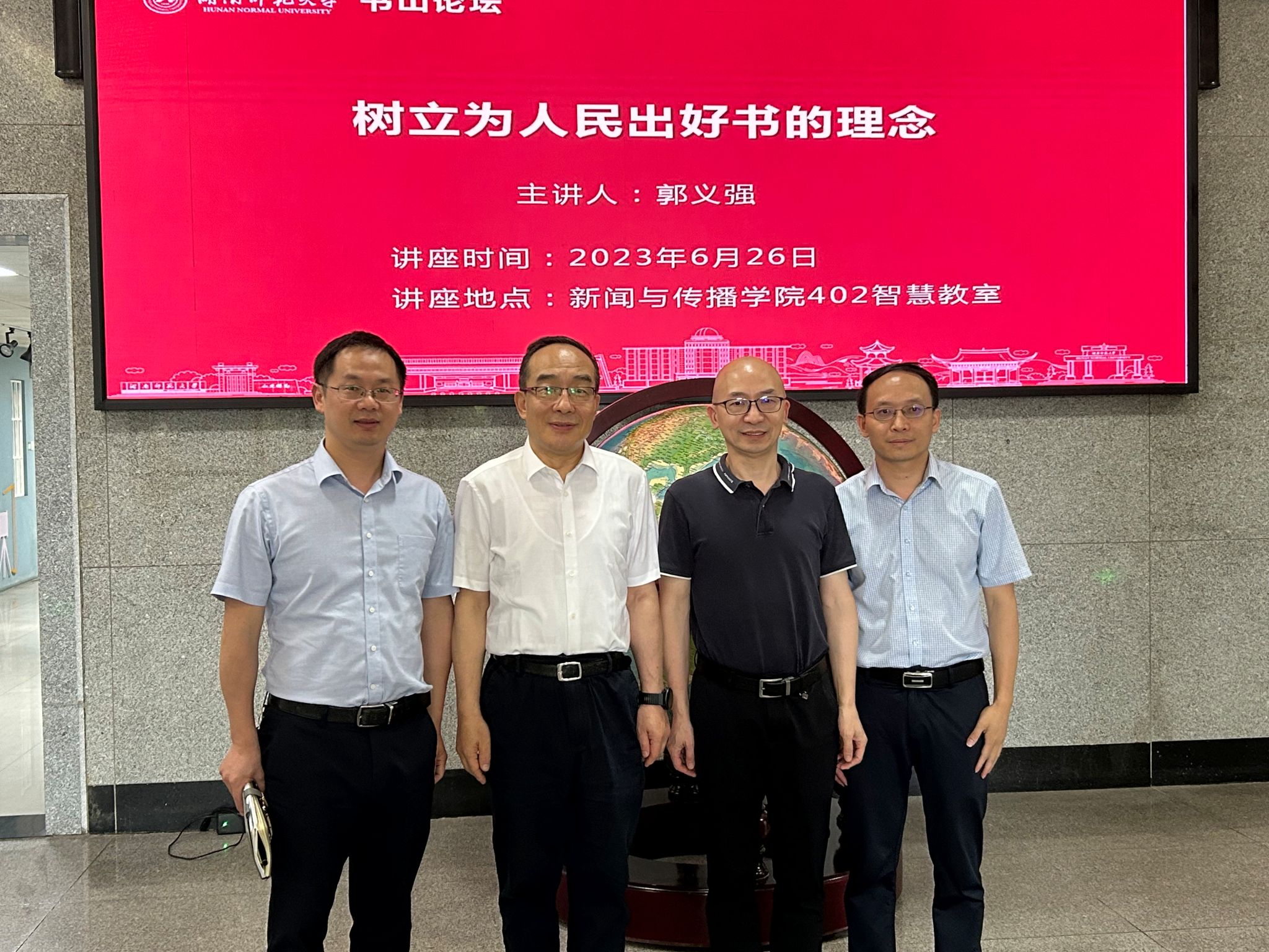 (通讯员 王倩)6月26日下午,中宣部原副秘书长、出版局局长,现任中国出版协会副理事长、中国图书评论学会会长郭义强来公司讲学,为vsport师生带来“树立为人民出好书的理念”主题讲座。讲座开始前,vsport胜利因您更精彩党委委员、纪委书记姚春梅教授会见了郭义强先生。中南出版传媒集团总编辑谢清风、公司党委书记沈贤岚出席讲座,讲座由vsport副经理王海刚教授主持。