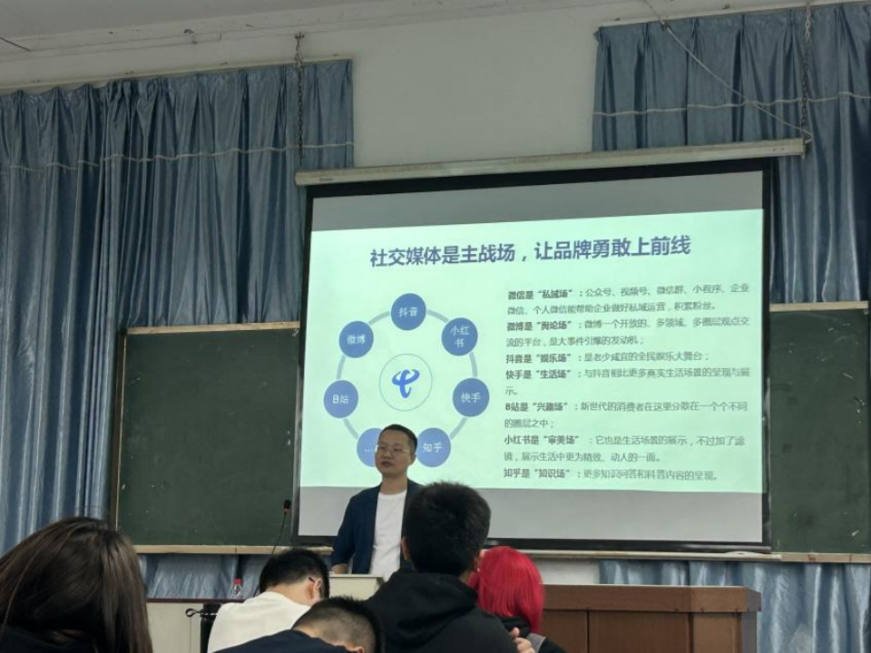(通讯员闵乐妍)11月7日晚,广告实务讲座“品牌的真相”在公司401教室举行,省广集团事业群副总经理彭旭知先生担任本次讲座的主讲人,2021级、2022级广告学专业全体同学参加了讲座,刘振老师主持了讲座。彭旭知2005年毕业于湘潭大学广告学专业,在省广集团历任策划总监、事业部副总经理,工作室管理合伙人,事业群副总经理等职务,在品牌管理、创意传播领域有较为深入的研究,曾入选中国品牌节中国100位优秀品牌专家和中国十大营销案例。