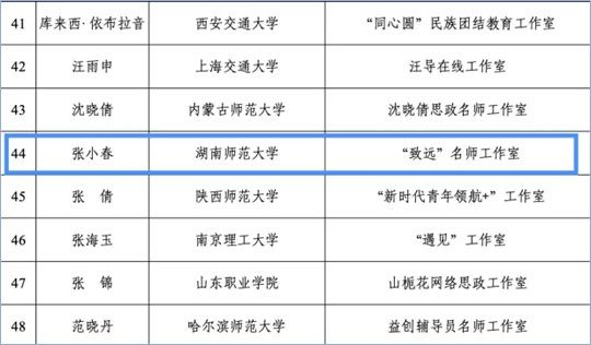 公司张小春主持的辅导员工作室入选教育部“高校辅导员名师工作室”