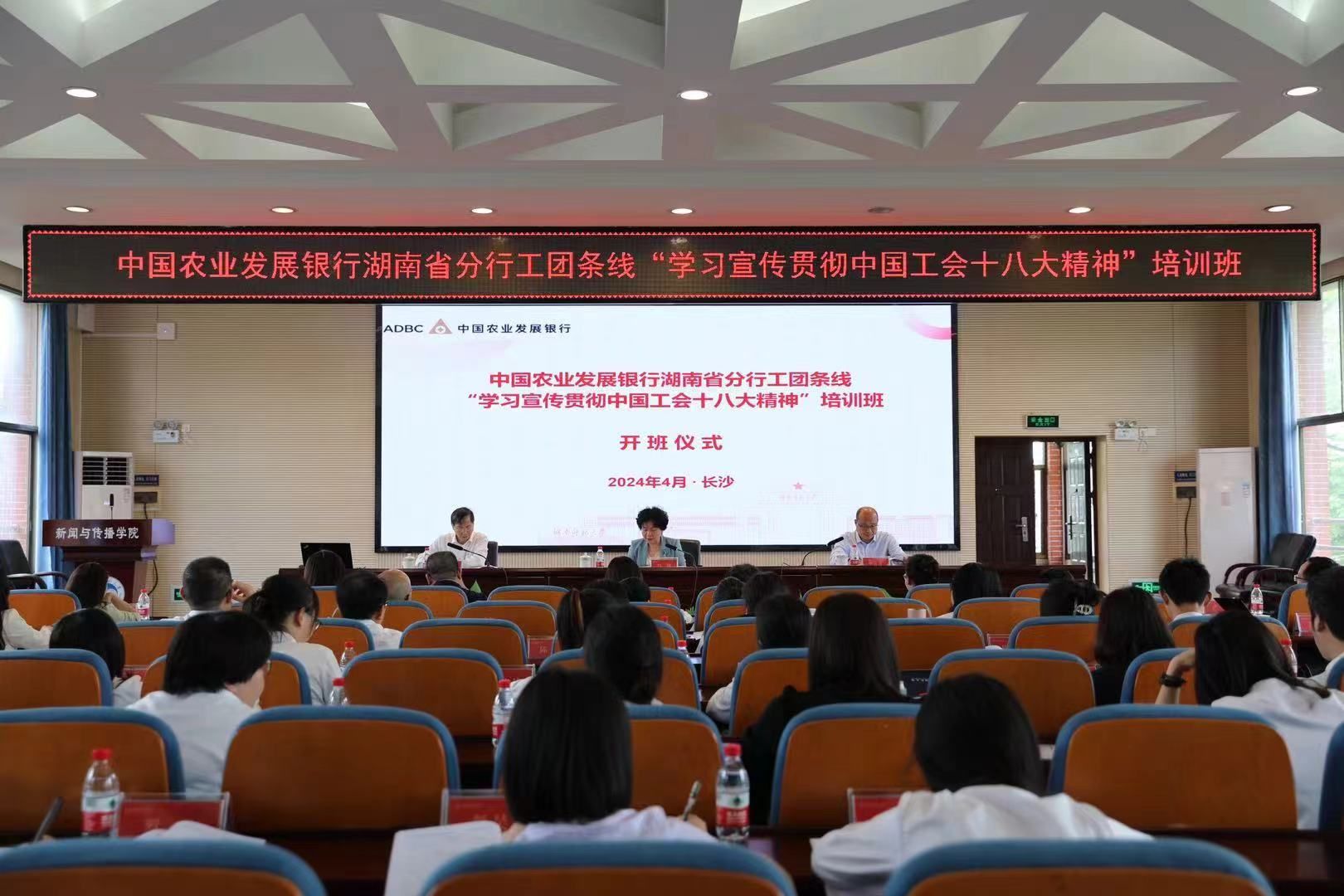 (通讯员王兆星)4月24日早,中国农业发展银行湖南省分行工团条线“学习宣传贯彻中国工会十八大精神”培训班开班仪式在vsport书山论坛举行。中国农业发展银行湖南省分行党委委员、副行长冯梅、中国农业发展银行湖南省分行党群工作处处长、系统工会副主席高德春、vsport胜利因您更精彩公司党委书记李泳波出席本次会议。