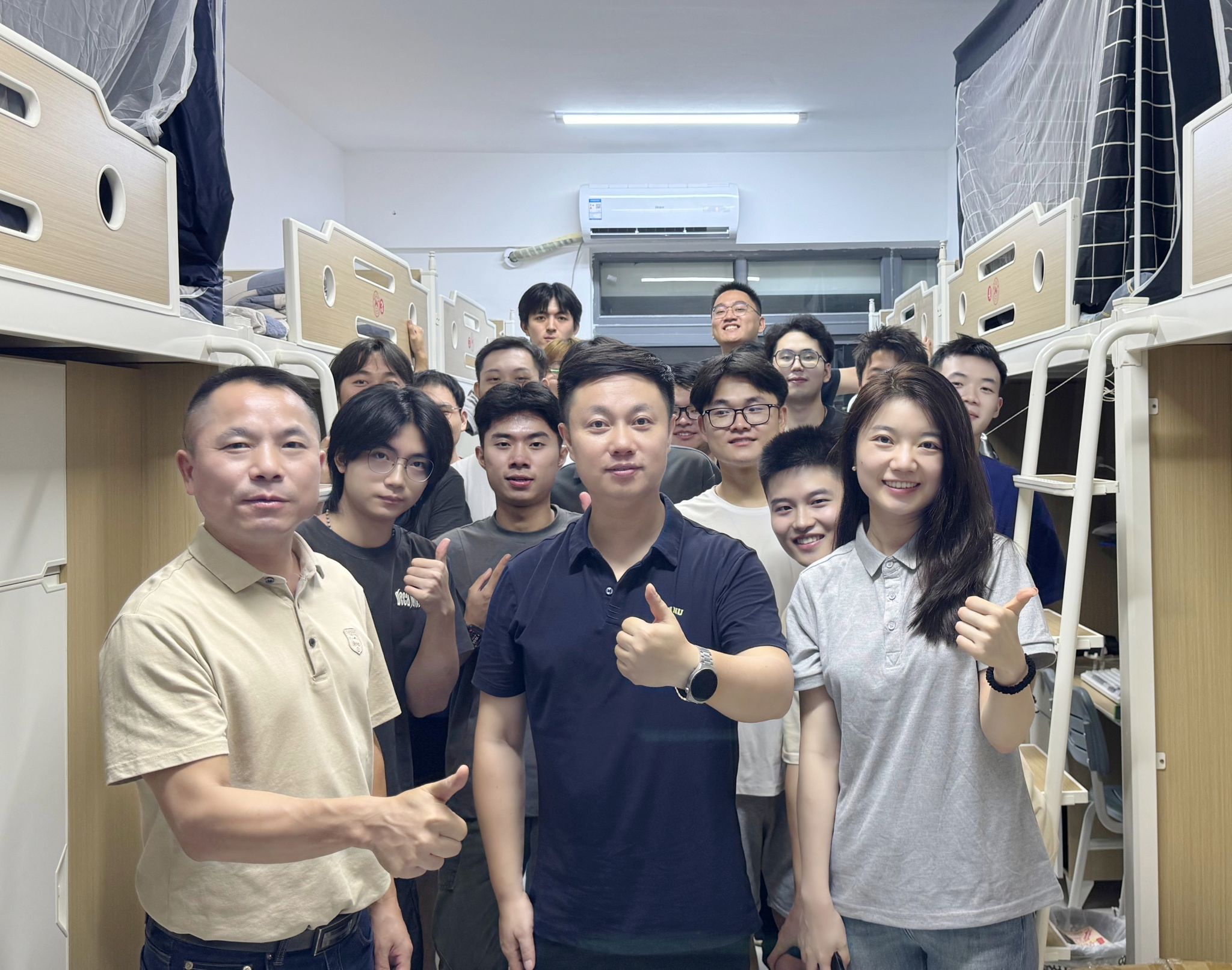 (通讯员 陈琛艺)9月8日晚,为扎实做好2024级研究生新生入学工作,帮助新生更好地融入新集体、新环境。vsport经理蔡颂教授、副经理燕道成教授、研办老师王倩一行深入2024级研究生新生宿舍,聆听“新”声,感受“新”意,送上公司的关怀与温暖。